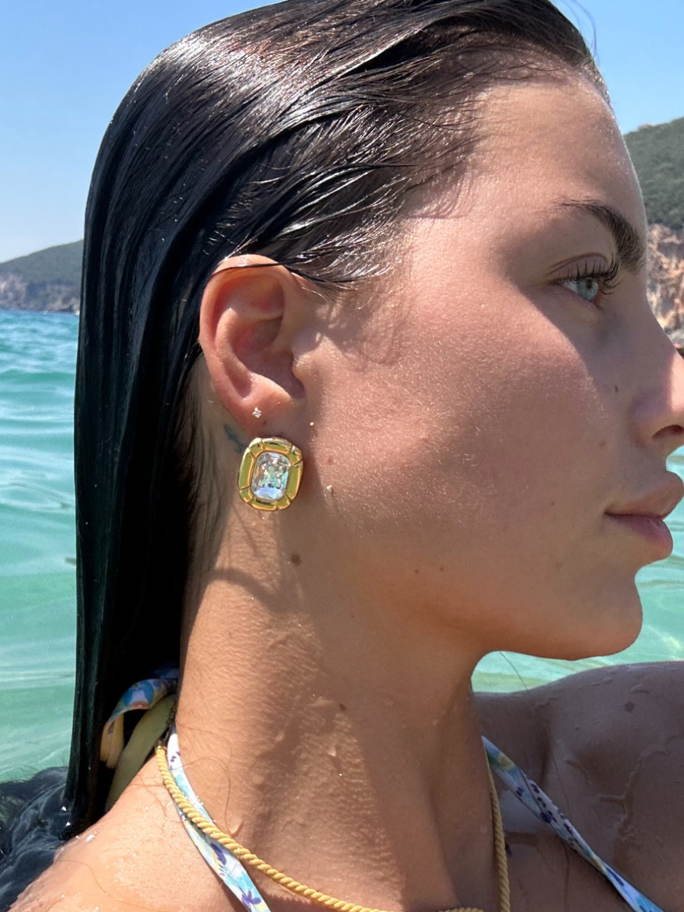 Gigi | perfect for adding a touch of glamour to any outfit. These statement earrings are waterproof, ensuring durability and shine whether you’re at the beach or an evening event!
