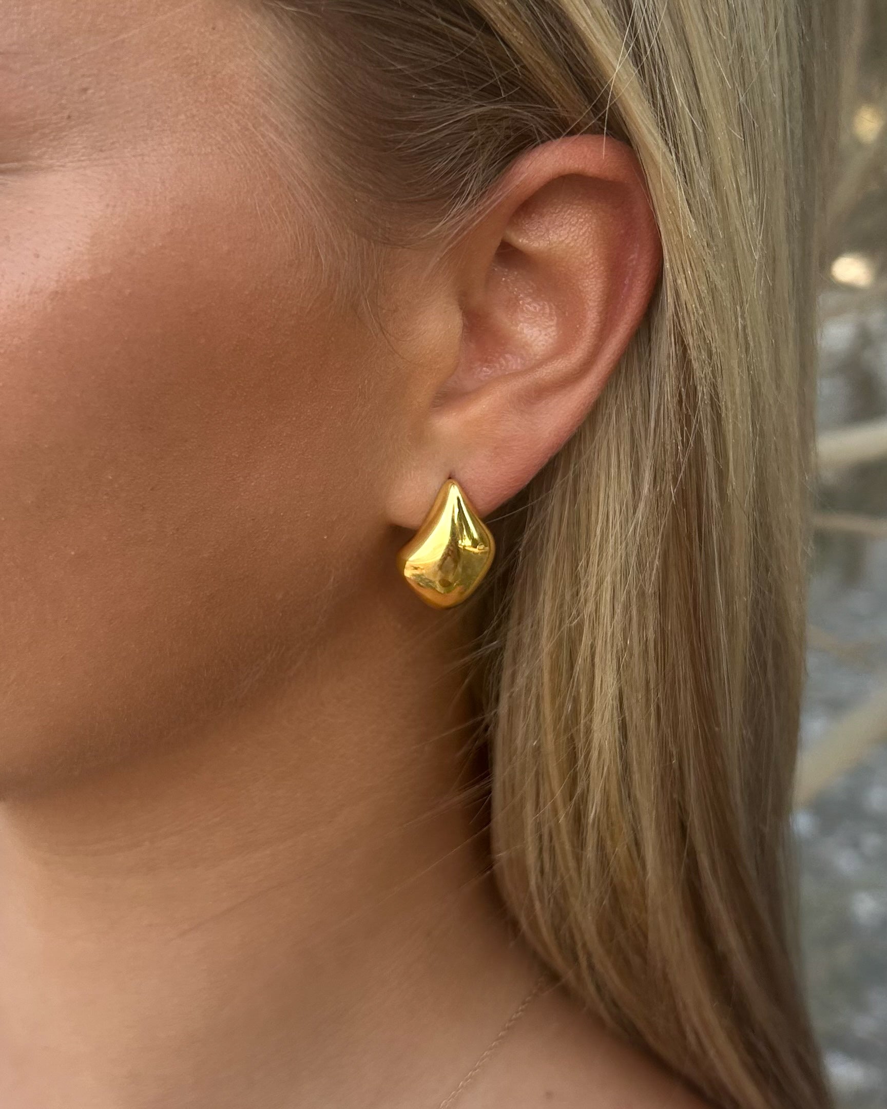 BLAIR | The Blair Earrings embody the essence of understated beauty with a timeless, minimalist design. Available in polished gold and silver, these earrings add a touch of effortless statement to any look.