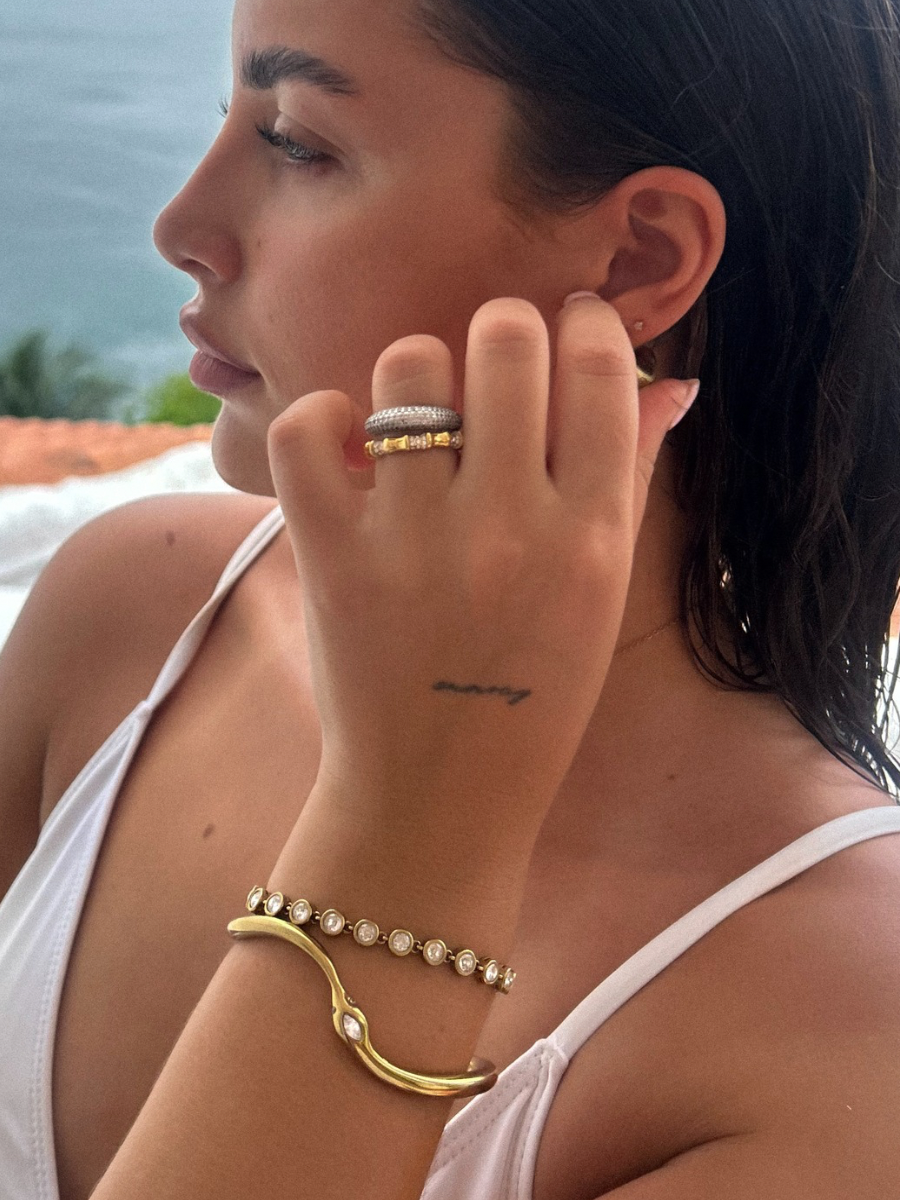 Laze | A fluid, undulating bangle that hugs the wrist in all the right ways. Smooth and softly curved, the Laze Bangle is made to live in — from linen mornings to late-night spritzes.