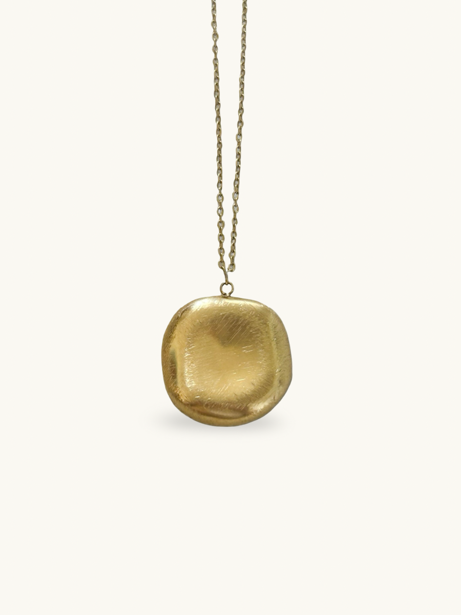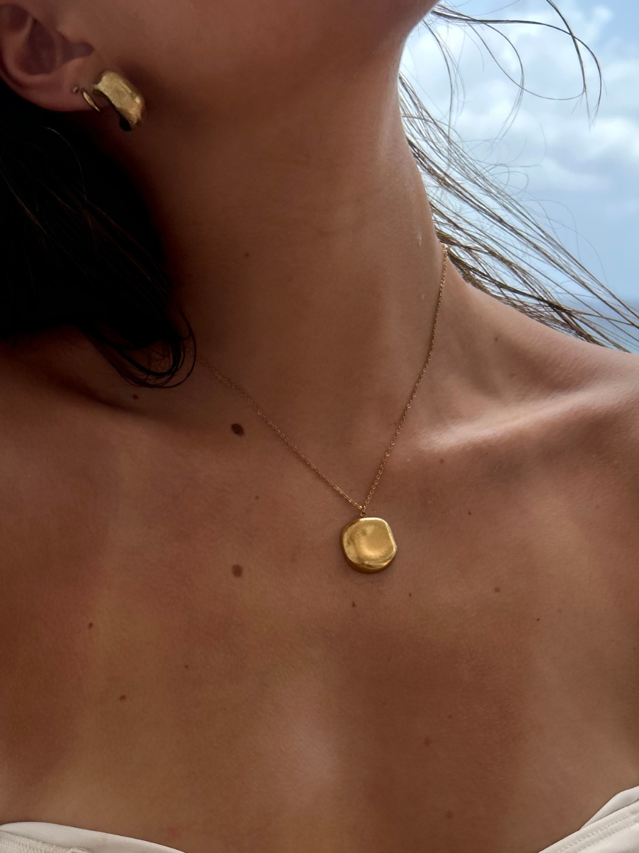 Ysso | A softly sculpted pendant with a polished, irregular finish — like sunlight melting over stone. The Ysso Necklace is your quiet luxury piece: subtle, substantial, and effortlessly layered or worn alone.
